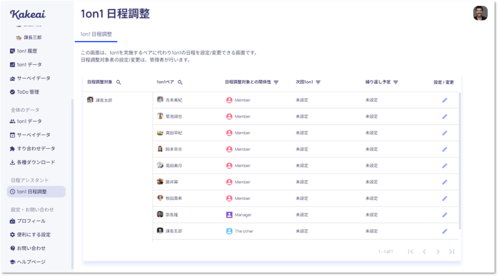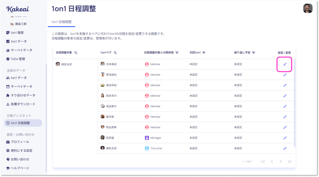 2-2. 1on1の日程を変更したいペアの設定/変更をクリックします。